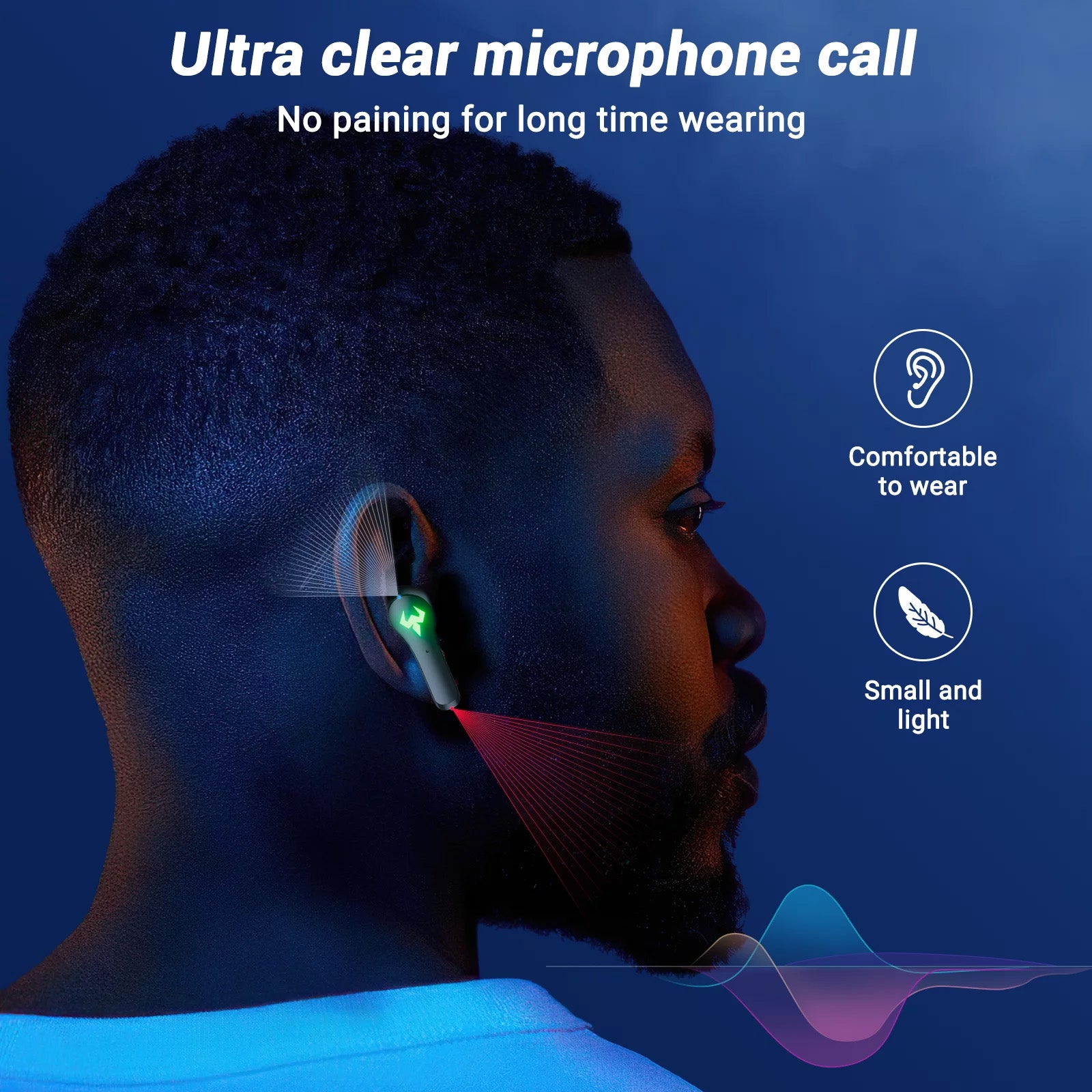 【Personalized Bluetooth Game 5.2】 Chip V5.2, transmission distance 10m, low power consumption, high frequency No delay detection, change game music mode 【Ultra clear biofilm】 New Bluetooth chip 5.2 for gaming, speaker with biofilm shock absorber Ultra clear biofilm, semi transparent, powerful sound quality. Adopting high-performance dynamic coil unit and graphene diaphragm. Restore sound quality to reach a higher level. 【Synchronized and independent left and right ears】 Regardless of the main or auxiliary headphones, you can hear it as soon as you pick it up. Equipped with intelligent dual host chips, the left and right ears are independently synchronized and connected, ready for use at any time.