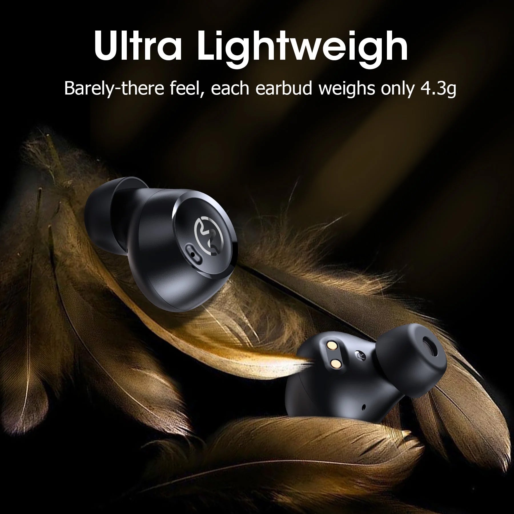 VEATOOL M14 earbuds, ultra-lightweight at 4.3g per earbud, offer a seamless blend of beauty and comfort. Ergonomic design ensures a secure fit ideal for sports. With a high-performance audio driver units , they deliver dynamic treble and powerful bass, enhanced by advanced Bluetooth 5.3 for superior sound quality within 10m. Perfect for on-the-go lifestyles.