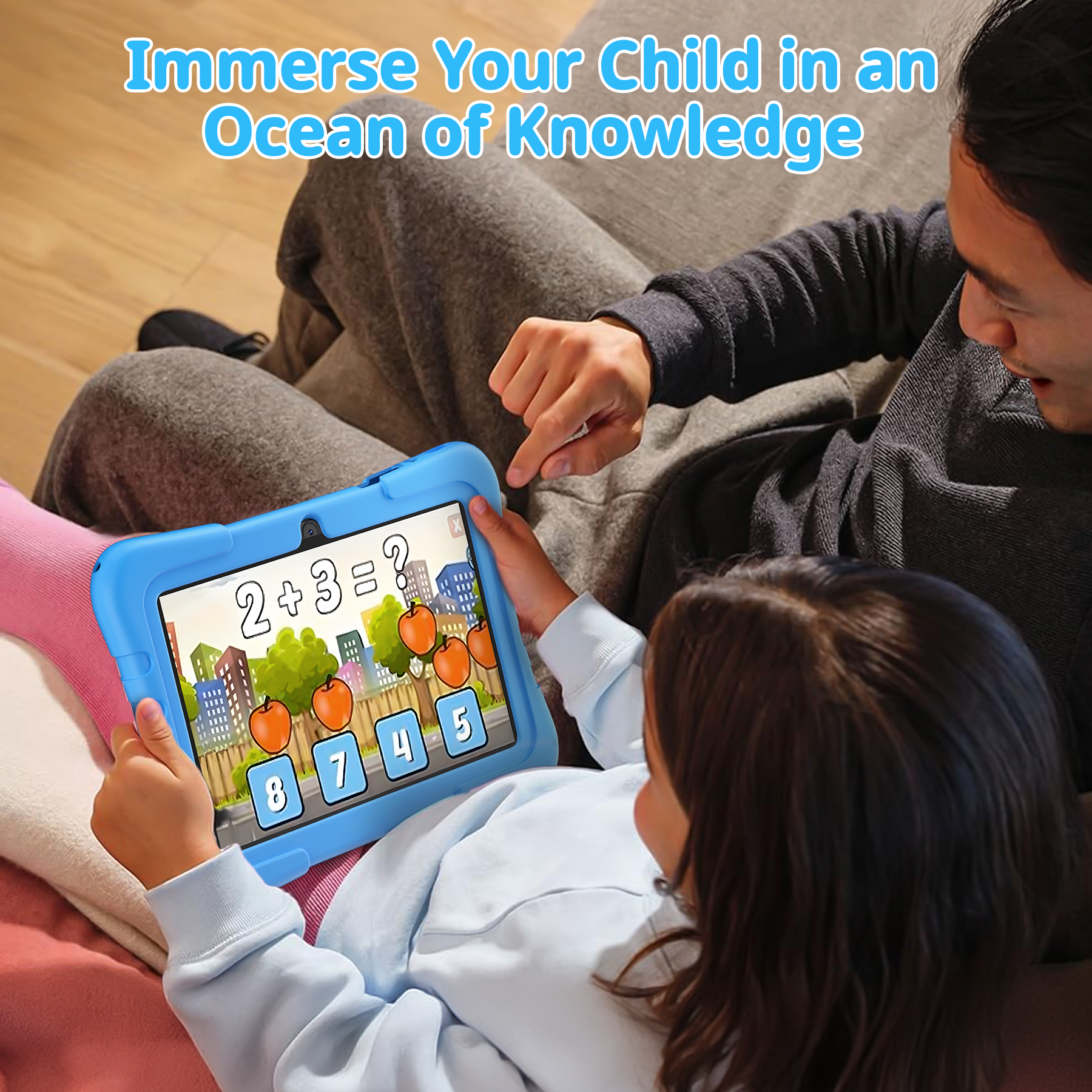 【Eye Protection While Having Fun】The 7 inch tablet adopts a 1024 x 600 IPS HD display, to present with vivid colors for a more true-to-life viewing experience from all angles. Adjust the HD tablet position with the back stand so kids don't need to hold the tablet all the time. Keep a proper distance for a more comfortable and eye-caring watching experience.