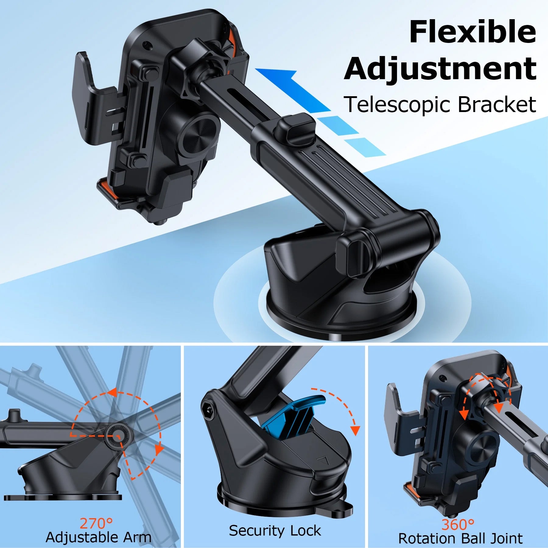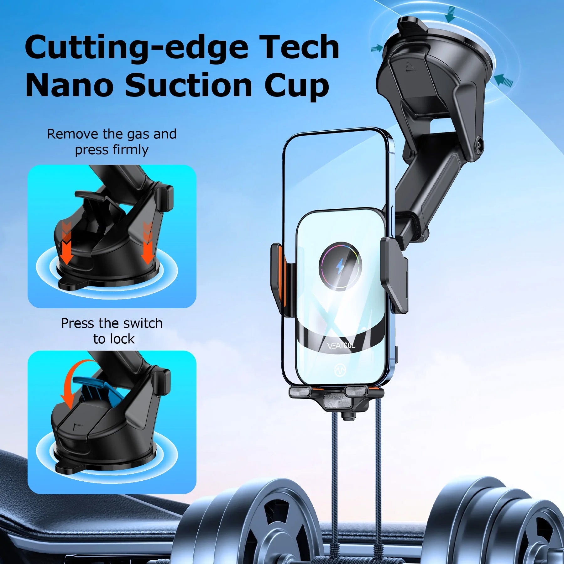- ⚡️【STRONG SUCTION POWER】The 2025 enhanced VEAT00L cell phone holder for car has passed 20000 testing materials, can firmly grips and stands up to severe shaking from rough, washboard infested dirt roads. The suction cup can withstand the temperature from -4℃(-40°F) to 90℃/(194°F), keeping the holder firmly in place. Strong suction cup also can be reusable after rinsing under warm water and air drying.