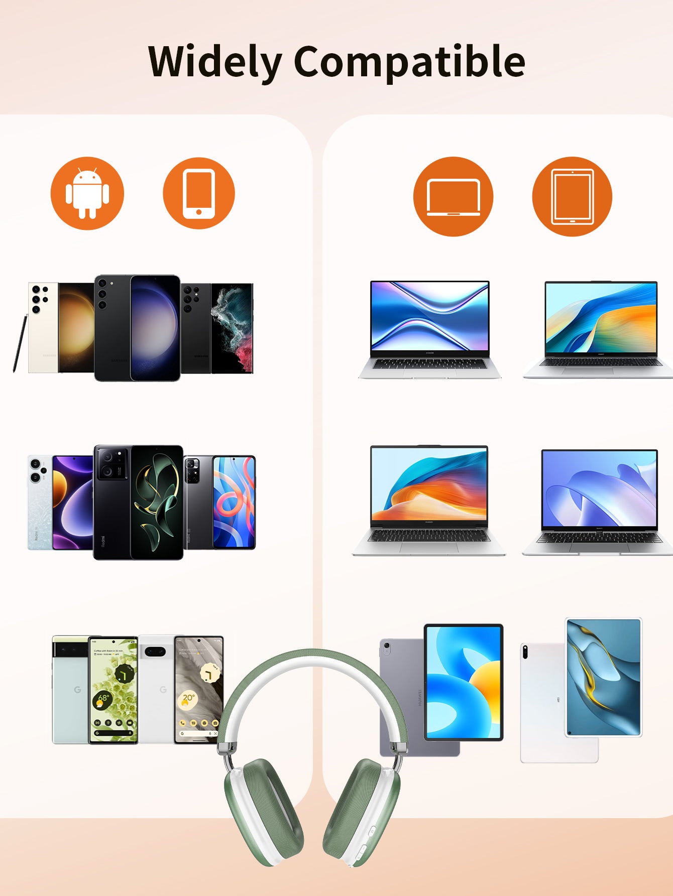 Lightweight and foldable design. The ear cups can be folded inward, and the hinge is made of metal, which is durable. Compact size, easy to store and carry. Suitable for travel, office, home, etc.
