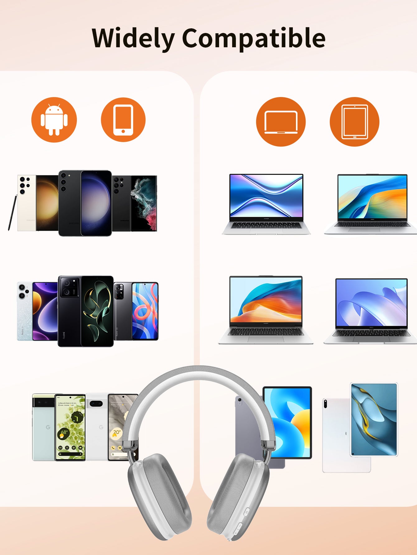 A:Two-channel stereo high-fidelity music playback, Bluetooth connection to maintain high-definition calls. The audio signal-to-noise ratio is greater than or equal to 92dB, so you don't need to worry about the uncomfortable feeling of noise and noise when using over ear headphones wireless bluetooth, it can immerse you in your music world.